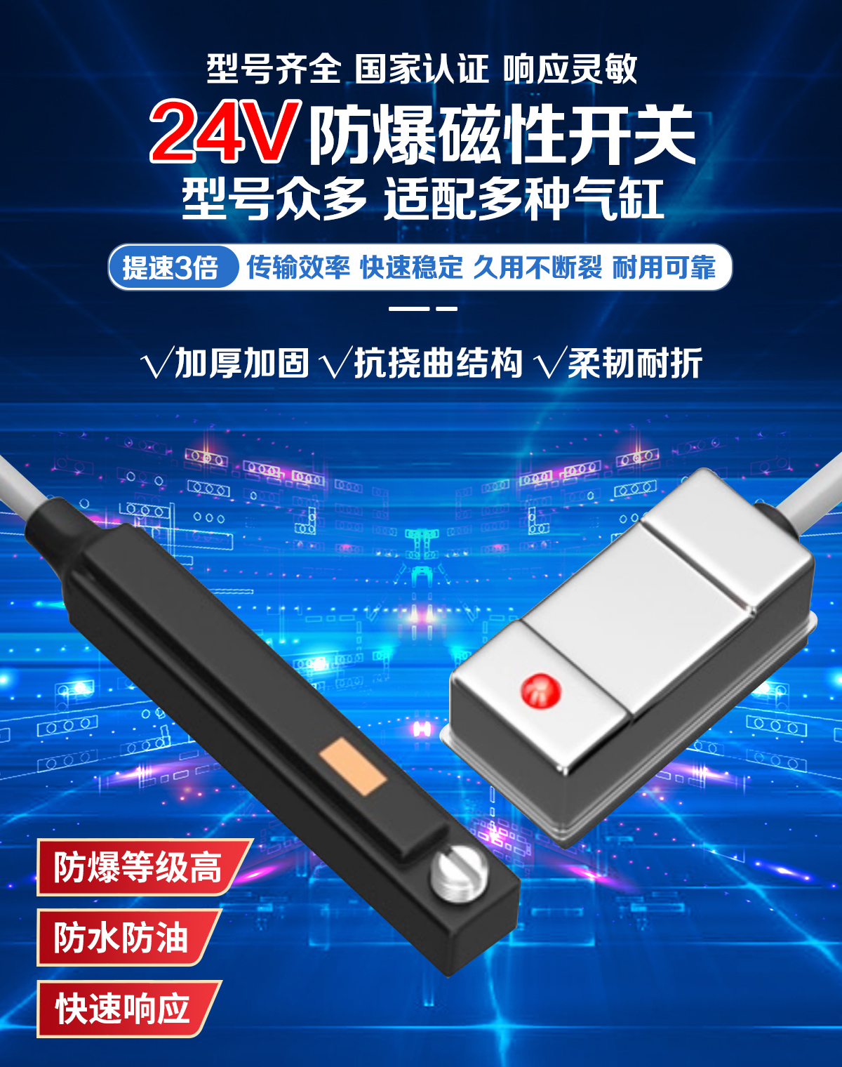 防爆磁性开关开关产品适用范围1区、2区危险场所,IIA、IIB、IIC类爆炸性环境、或20区、21区、22区可燃性粉尘场所;温度组别:T6; 防护等级IP68;适用各类气缸、外形可直接替换市场再用的各类磁性开关。产品广泛用于化工、炼油、石油开采、海洋